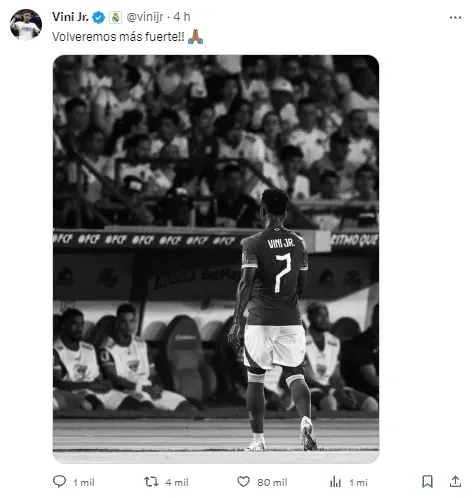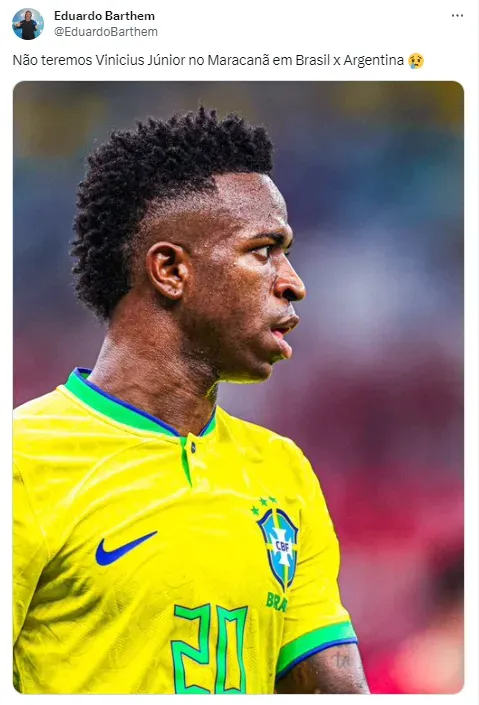 Nas redes sociais, Vinícius Júnior postou uma foto em preto e branco, com a camisa da Seleção e com a seguinte legenda: “Voltaremos mais fortes”. Por outro lado, Diniz terá a chance de chamar outro nome para o lugar.