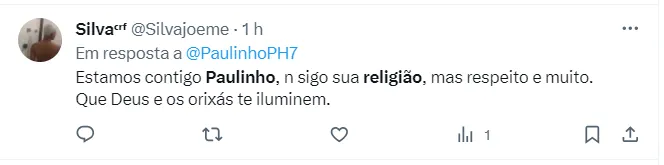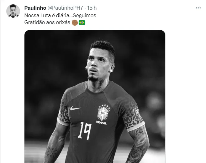 Neste domingo, em reposta aos ataques, Paulinho fez um post em suas redes sociais, com a camisa da seleção brasileira em preto e branco, com a seguinte legenda: “Nossa luta é diária… Seguimos. Gratidão aos orixás”.