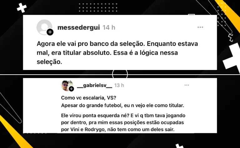 Atuando centralizado, o jogador disputaria posição com Rodrygo no Brasil. Porém, ele também já jogou pelas, onde tem Savinho, que tem se destacado no Manchester City, e Vini Jr, um dos melhores do mundo atualmente.