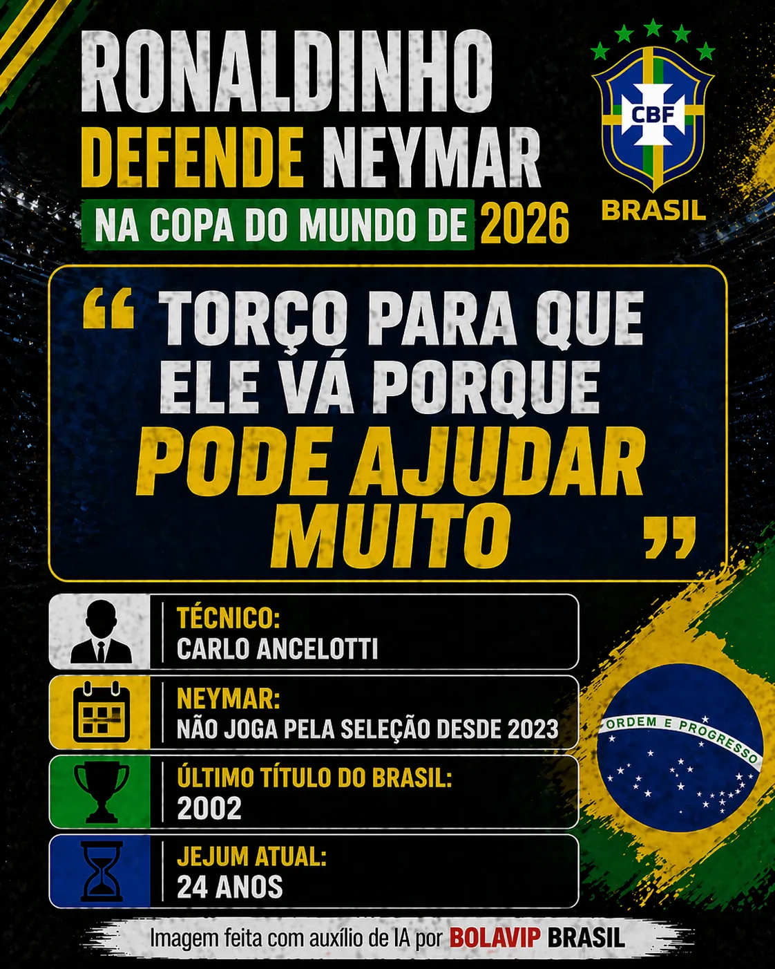 Ronaldinho Gaúcho defende Neymar na Copa do Mundo