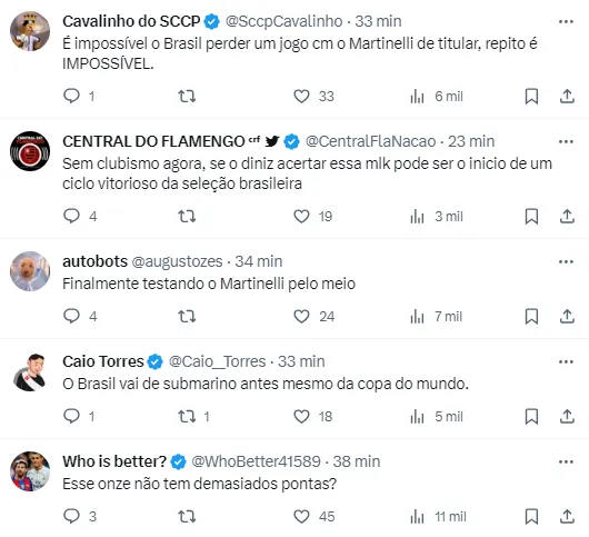 “Acredito que são dois jogadores fundamentais para a Seleção. O Neymar e o Casemiro são dois jogadores de nome, já consagrados. Creio que para quem for entrar e jogar, vai ser uma chance muito boa de mostrar o seu valor. Vamos tentar treinar bem hoje e amanhã para estarmos prontos para desempenhar um grande jogo contra a Colômbia”, disse.