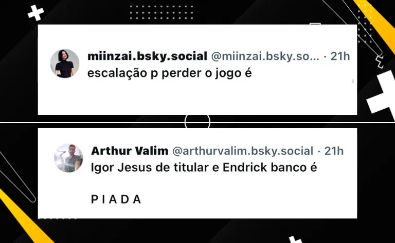 A novidade para essa partida é a titularidade de Abner e Igor Jesus. O atacante do Botafogo ganha sua primeira oportunidade entre os 11 já na sua estreia. Já Endrick ficará no banco de reservas. Dorival foi questionado pelas suas escolhas e justificou.