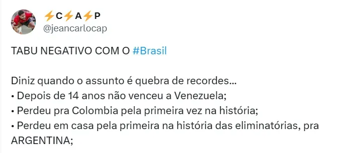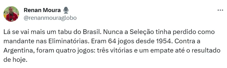 Nesta terça-feira (21), a Seleção Brasileira recebeu a Argentina no Maracanã. A partida foi válida pela sexta rodada das Eliminatórias da Copa do Mundo de 2026, que será disputada nos Estados Unidos, México e Canadá.