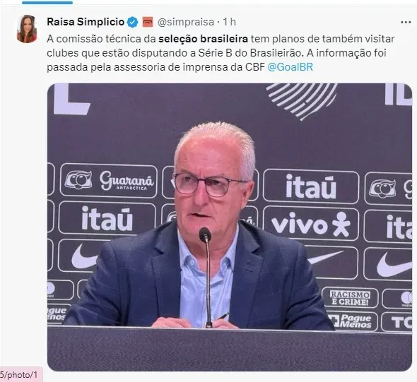 Dorival Júnior, Rodrigo Caetano e integrantes da comissão técnica da CBF vão começar a viajar pelo país para observar partidas dos times da Série A. O objetivo da comissão é analisar todas as partidas visando a convocação da Copa América de 2024.