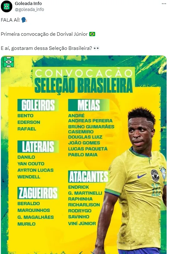 Diante da longa agenda que terá ao longo desse ano, Dorival Júnior terá a grande missão de conduzir o Brasil aos seus momentos gloriosos.