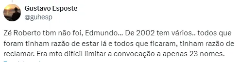Você acha que Zé Roberto deveria ter tido uma chance em 2002?