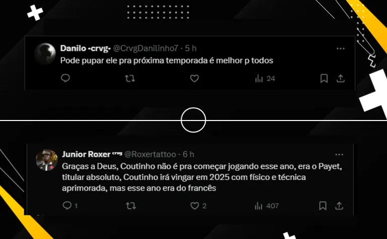 Alguns torcedores mostram uma opinião parecida envolvendo Coutinho para o próximo ano: “eu acho que ele será fundamental para 2025, mas atualmente não deve ser titular do Vasco“. “Payet é o titular, o Coutinho não tem condições físicas de começar com Rafael Paiva“.