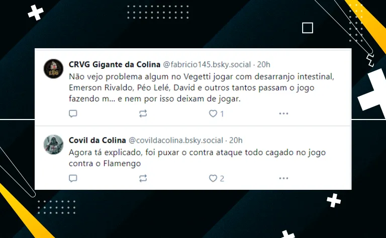 Por fim, por mais que tenha perdido alguns treinos no CT Moacyr Barbosa, a tendência é que Vegetti se recupere e esteja à disposição no final de semana. A bola vai rolar às 16h.