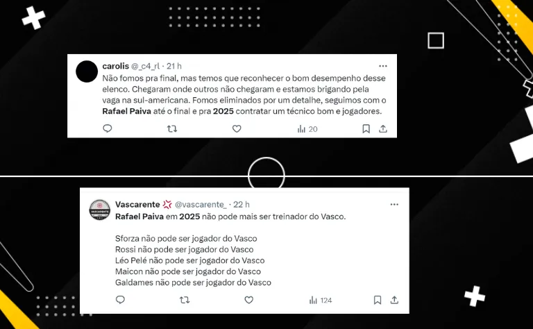No entanto, a torcida vascaína não aliviou para Rafael Paiva e alguns jogadores na rede social do X. Os torcedores consideram que o presidente Pedrinho precisa dispensar no fim do ano o treinador e +5 atletas.