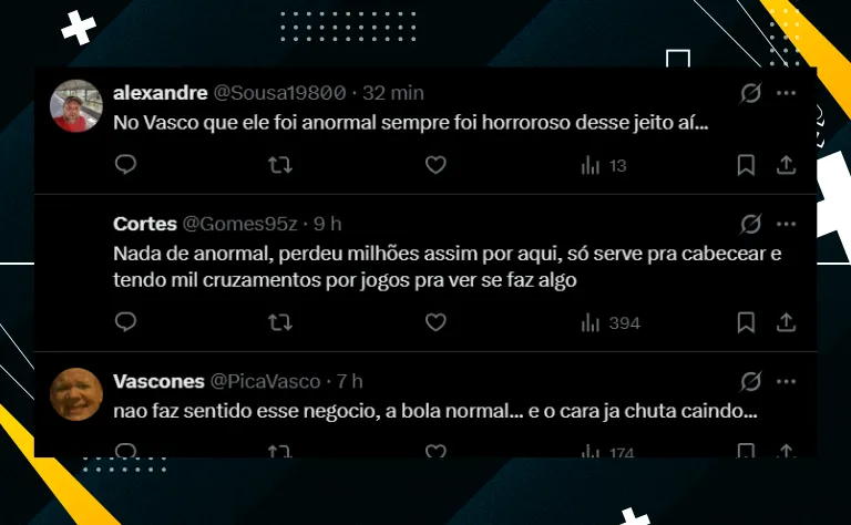 Por último, mesmo com o Cruz-Maltino se preparando para o clássico diante do Fluminense neste domingo (22), a situação do atacante argentino causou rebuliço nos vascaínos. Veja alguns comentários: